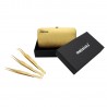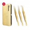3PCS Complete Gold Titanium Coated Volume Tweezers Eyelash Extension Set With Gold Metallic Magnetic Pouch